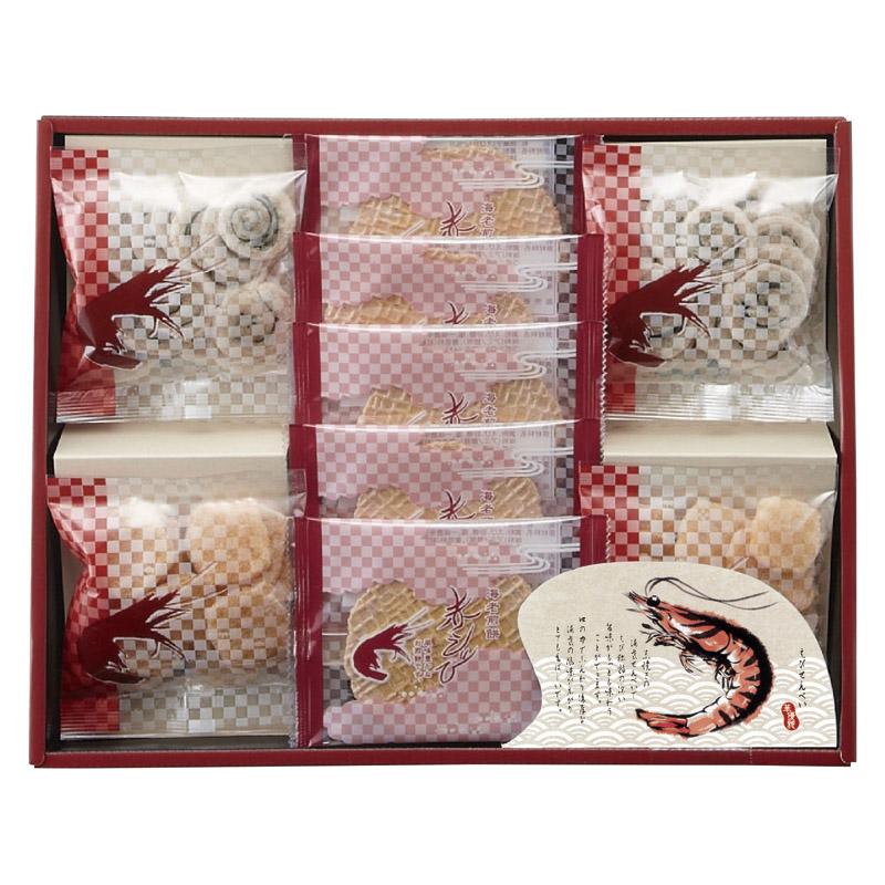 • 商品内容:赤えびせんべい(1枚)×5、えびせん(うず巻・えび松風)(各10g)×各2