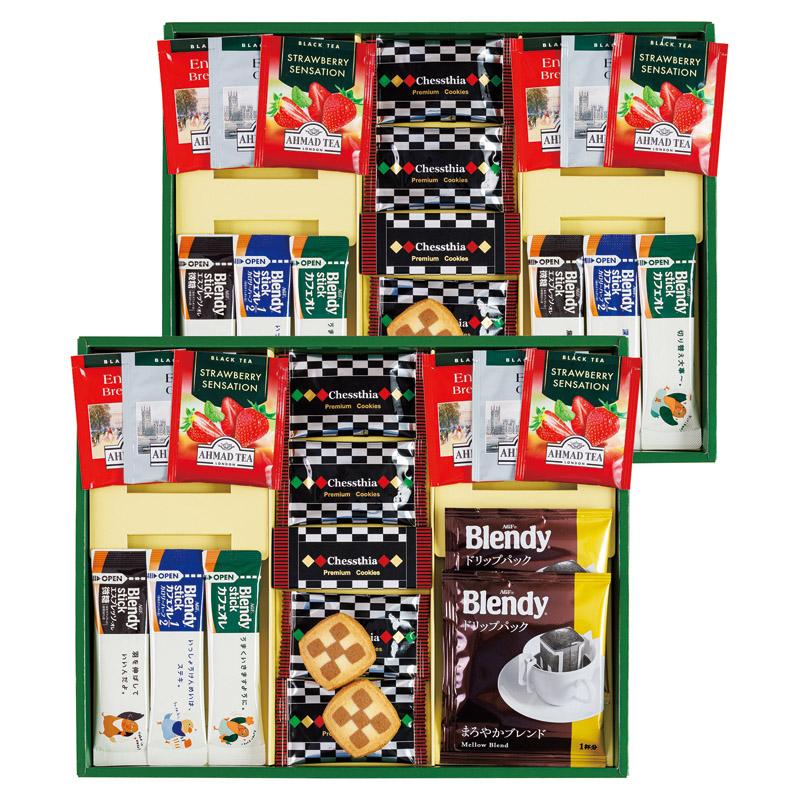 味にこだわるAgFドリップコーヒーと、お湯を注ぐだけの手軽なスティックコーヒーをセットしました。クッキーや紅茶も含めたバラエティーに富んだ詰合せギフトです。