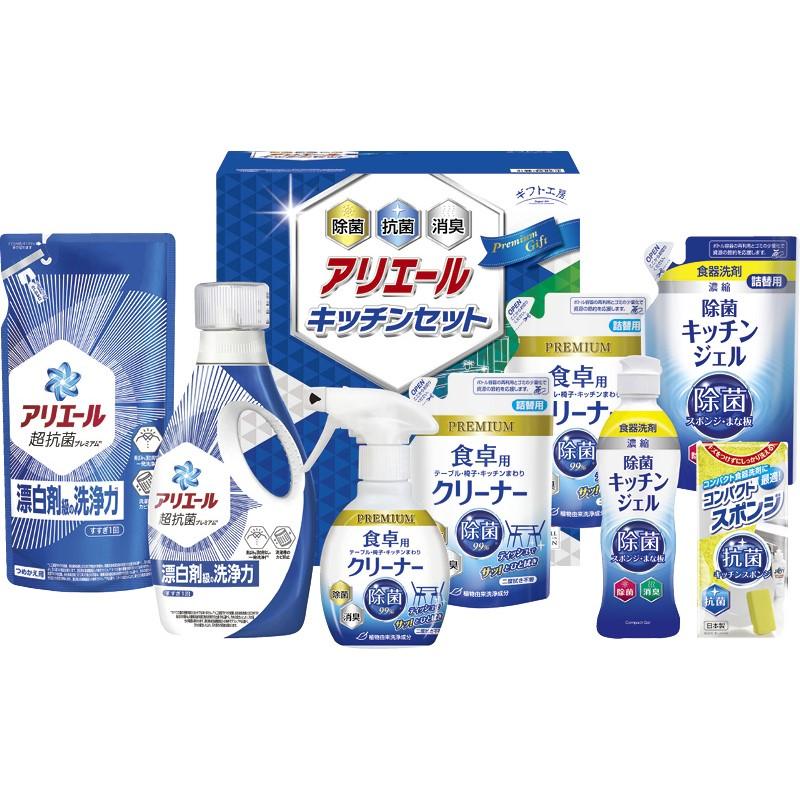 • 商品内容:食卓用クリーナー詰替用(250ml)×2、P&Gアリエールジェル(720g)・P&Gアリエールジェル詰替用(405g)・食卓用クリーナー(260ml)・除菌キッチンジェル(200ml)・除菌キッチンジェル詰替用(160ml)・コンパクトスポンジ×各1