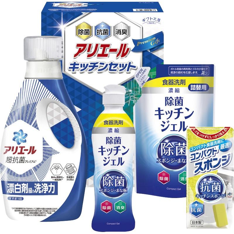 • 商品内容:P&Gアリエールジェル(720g)・除菌キッチンジェル(200ml)・除菌キッチンジェル詰替用(160ml)・コンパクトスポンジ×各1