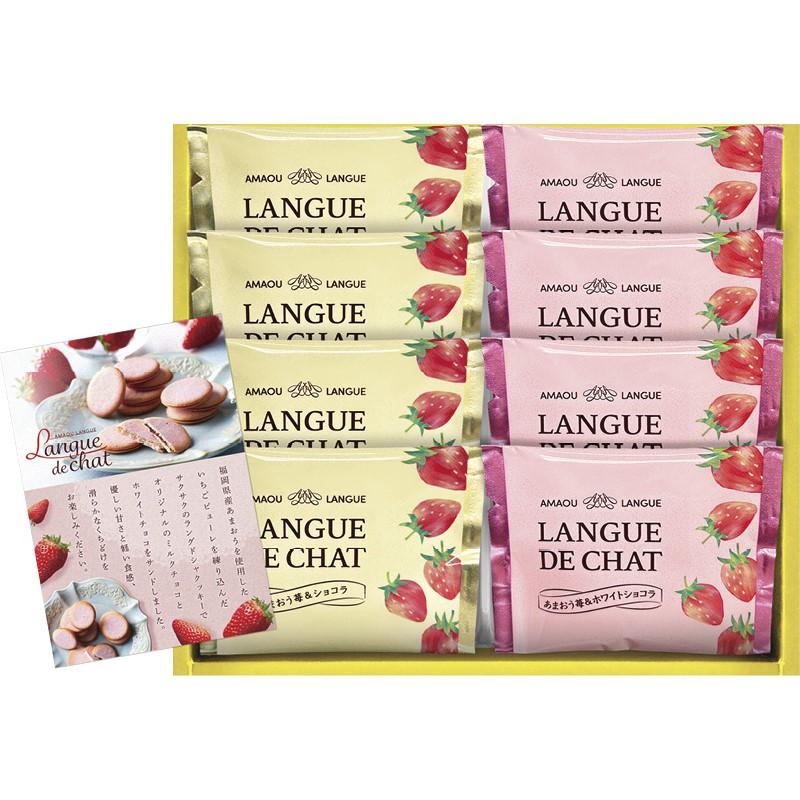 福岡県産あまおうを使用したいちごピューレを練り込んだサクサクのラングドシャクッキーでオリジナルのミルクチョコとホワイトチョコをサンドしました。優しい甘さと軽い食感、滑らかなくちどけをお楽しみください。
