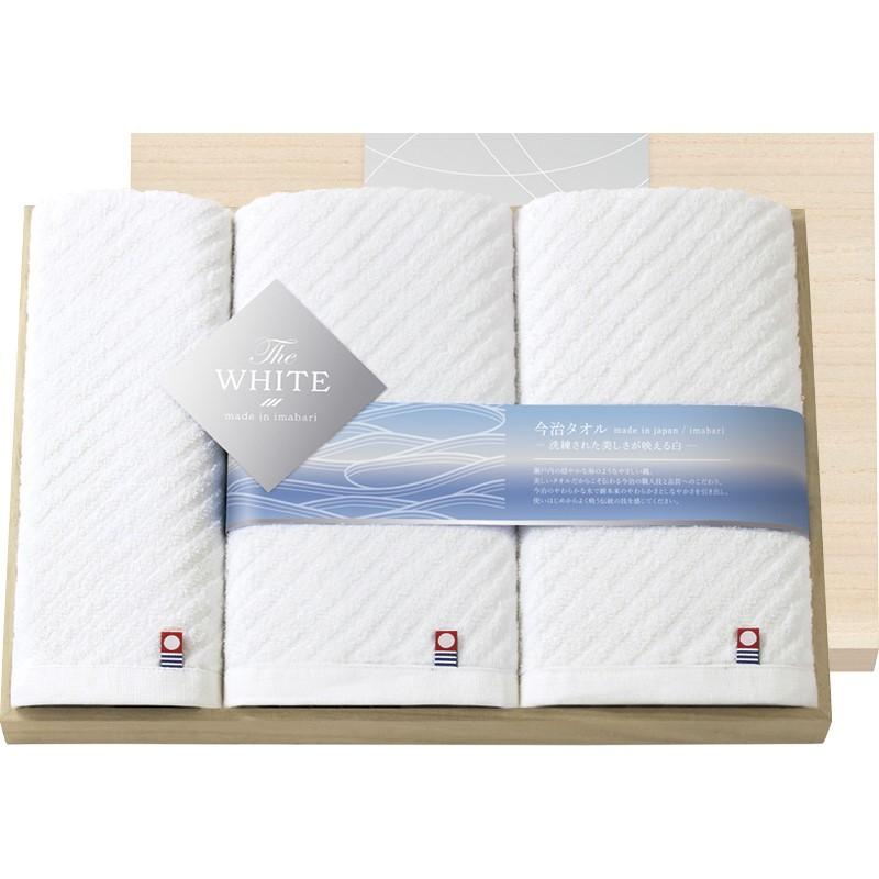 • 今治 ザ ホワイト 日本製 スリムバスタオル2P&フェイスタオル(木箱入) 65540