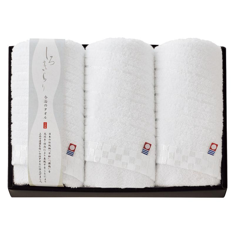 上品な白さの中に光沢糸がきらり。風合いも美しい上質な逸品。日本の伝統柄「市松」と「横縞」を、光沢糸とジャカード織りの凹凸により美しく表現。上品で清潔感あふれる白い今治タオルに仕上げました。慶弔を問わず幅広い世代の方に贈りやすい、ハイクオリティなタオルです。