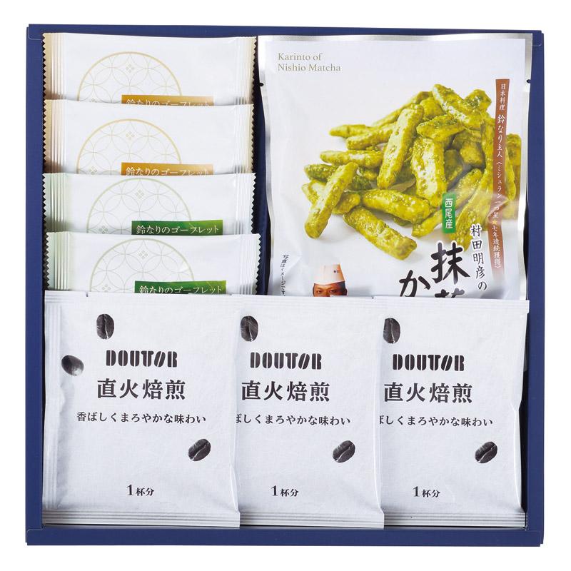 • 商品内容:ドトールコーヒードリップコーヒー×3、抹茶ゴーフレット・米粉ゴーフレット×各2、抹茶かりんとう(40g)×1