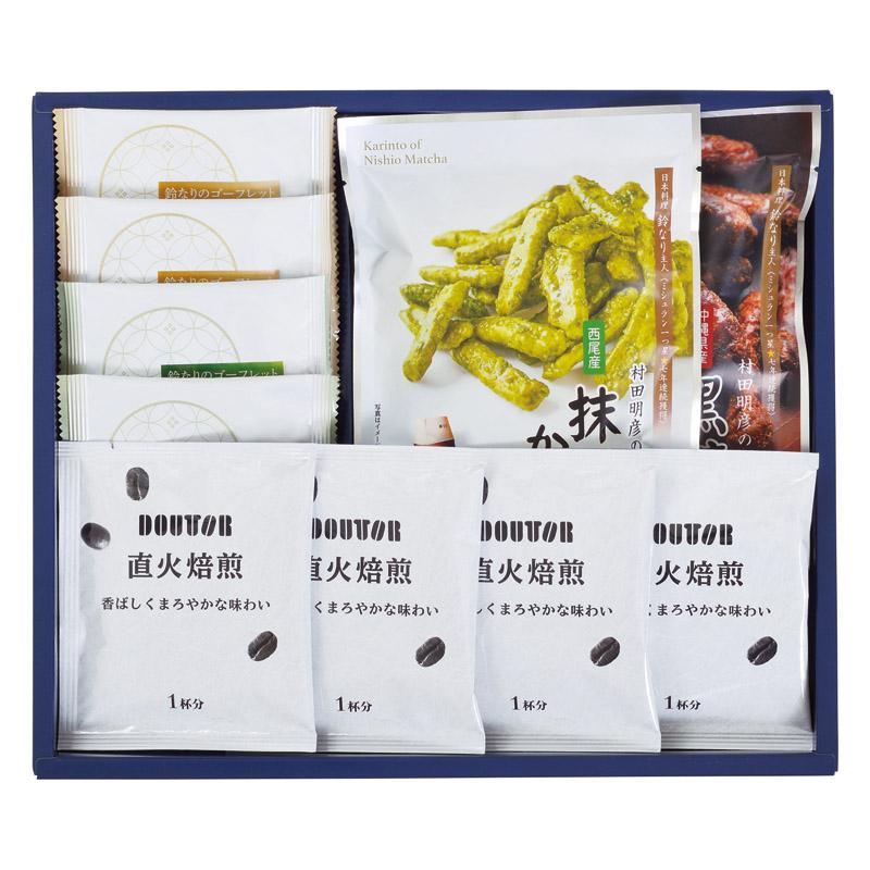 • 商品内容:ドトールコーヒードリップコーヒー×4、抹茶ゴーフレット・米粉ゴーフレット×各2、黒糖かりんとう(50g)・抹茶かりんとう(40g)×各1