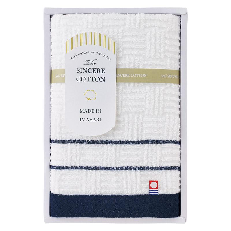 ネイビーとホワイトのコントラストが美しい品格あふれるギフトセット。ノーブルな紺色と白色のコントラストが美しい、高級感のあるタオルです。フォーマルでも映えるシックでモダンなデザインが自慢です。
