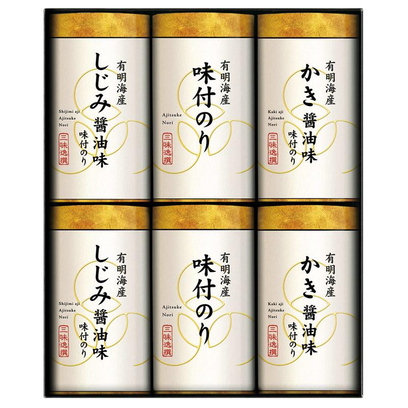 • 商品内容:有明海産味付海苔・有明海産しじみ醤油味付海苔・有明海産かき醤油味付海苔(各8切16枚)×各2