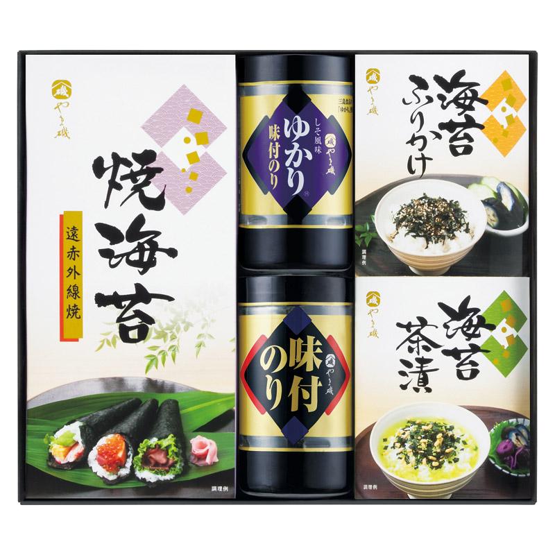 • 商品内容:味付のり(8切24枚)・しそ風味のり(8切24枚)・焼のり 2袋詰(2切6枚)・のり茶漬(5.5g×3袋)・のりふりかけ(5g×3袋)×各1