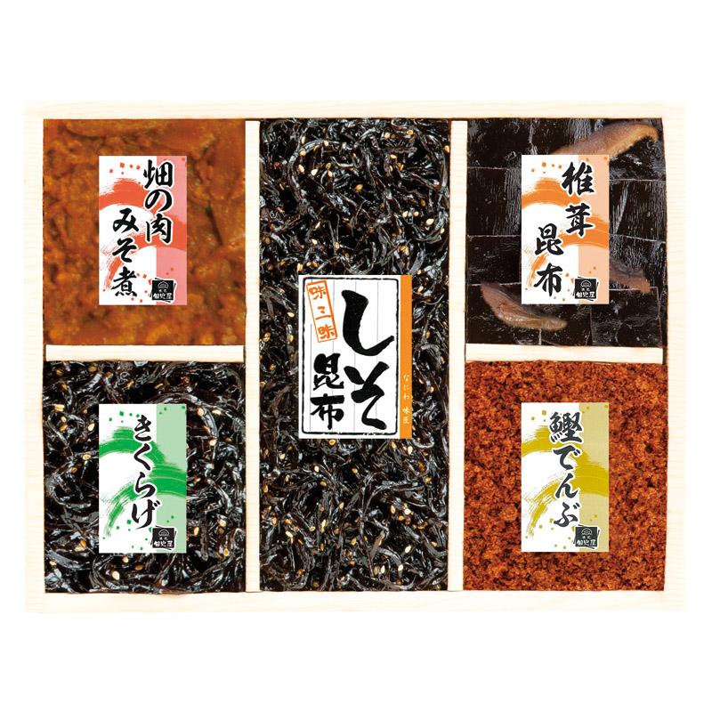• 商品内容:しそ昆布 (80g)・椎茸昆布 (45g)・きくらげ (45g)・畑の肉みそ煮・鰹でんぶ (30g)×各1