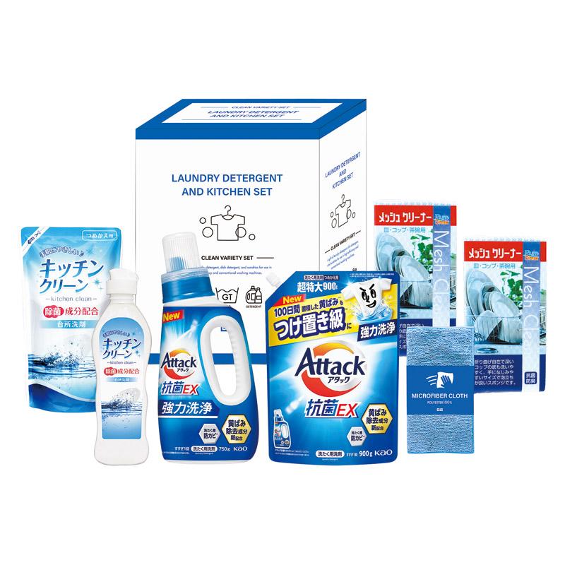 • 商品内容:メッシュクリーナー(中国)×2、花王アタック抗菌EX本体(750g)・花王アタック抗菌EX詰替用(900g)・キッチンクリーン(250ml)・キッチンクリーン詰替(200ml)・マイクロファイバークロス(中国)(20×20cm)×各1