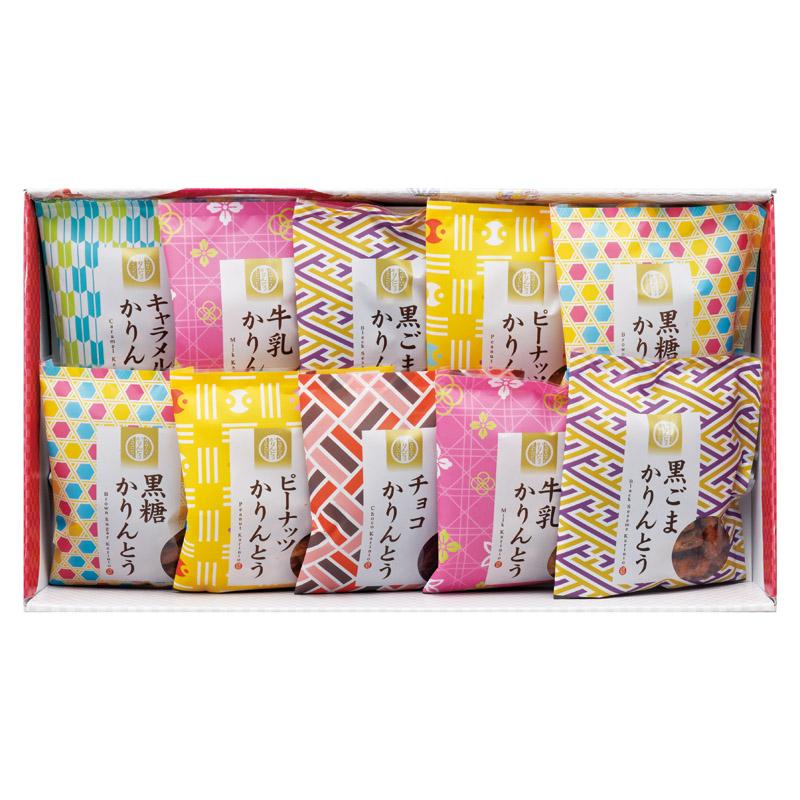 • 商品内容:黒ごまかりんとう・黒糖かりんとう・牛乳かりんとう・ピーナッツかりんとう(各45g)×各2、チョコかりんとう・キャラメルかりんとう(各45g)×各1